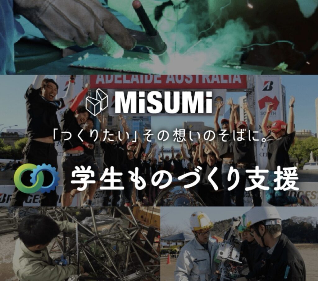 この度、株式会社ミスミグループ本社様による 2023年度 ミスミ学生ものづくり支援 の通常支援団体に選定いただきました。 商品点数3000万点以上、サイズ違いなどを含めると800垓点以上を誇るミスミ様のラインナップより、車輌製作に用いる部品などを支援いただきます。