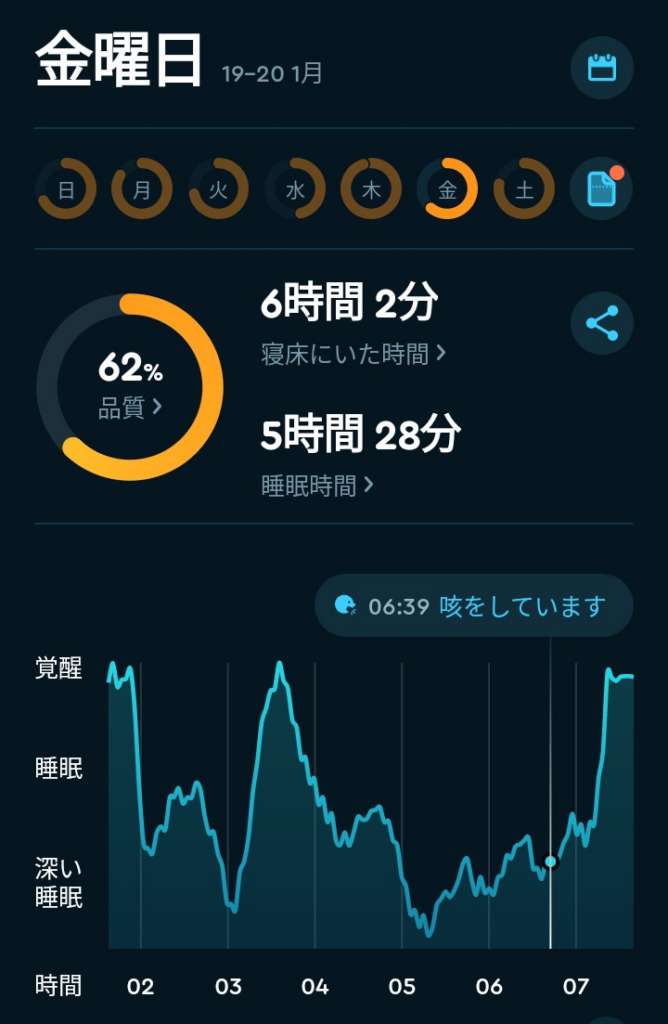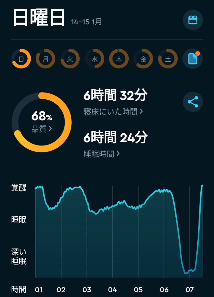 冬はどうしても朝起きづらくなってしまうので改善しよう試み、睡眠記録アプリを入れる事にしてみました。1日目の結果がこれです。