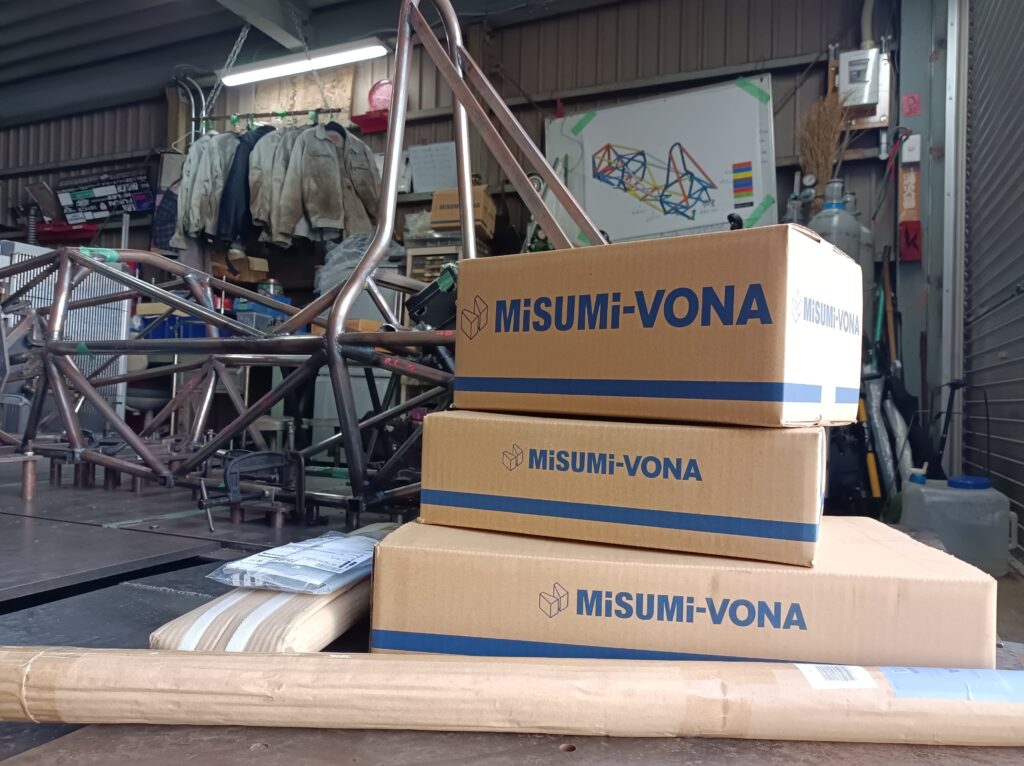 株式会社ミスミグループ本社様の学生ものつくり支援にて部品を支援していただきました。先日、これらの部品が弊チームのガレージに到着いたしました。