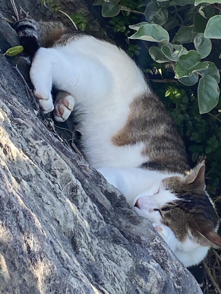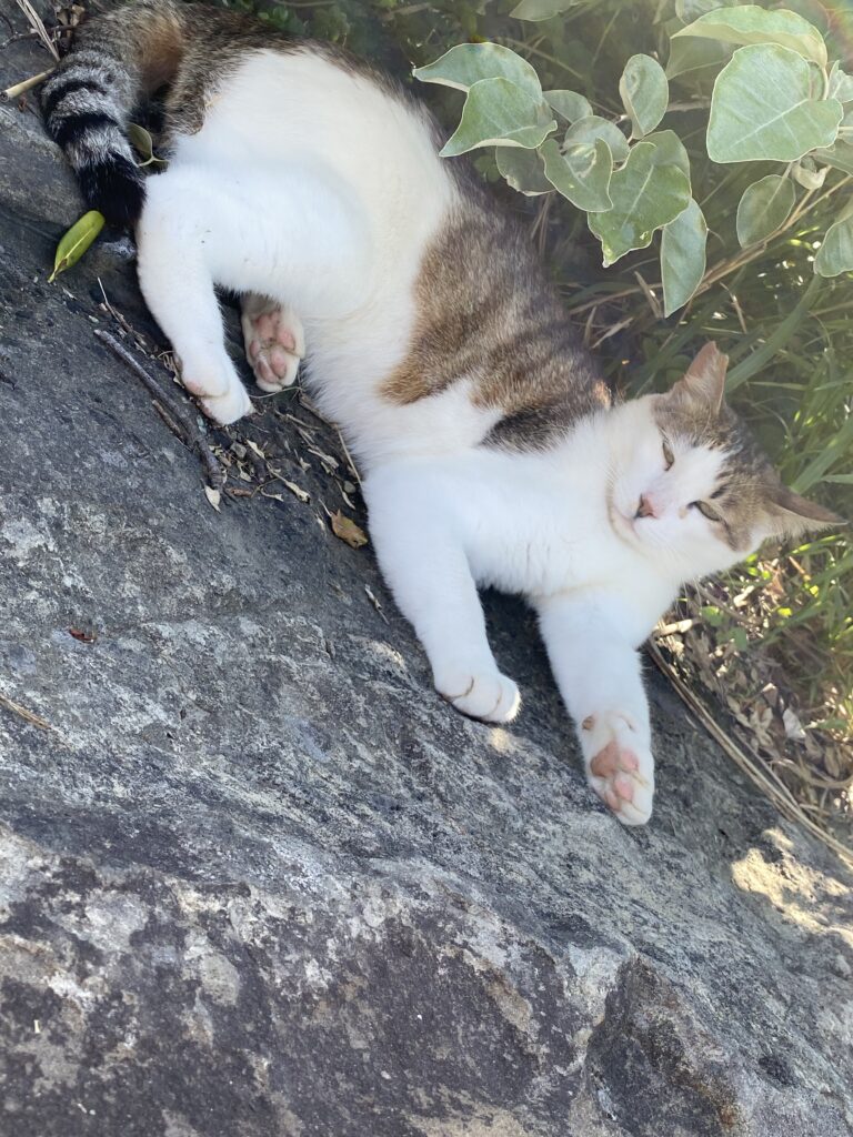 あと、城ヶ島の地域で飼ってると思われるニャンコが可愛すぎました。その時は5月といえども、猛暑日は増えてきており、加えて海沿いの日射量は凄まじいわけです。だからニャンコ様は日陰で休んでおられます。私には、「暑いにゃ~」という声がはっきり聞こえました。