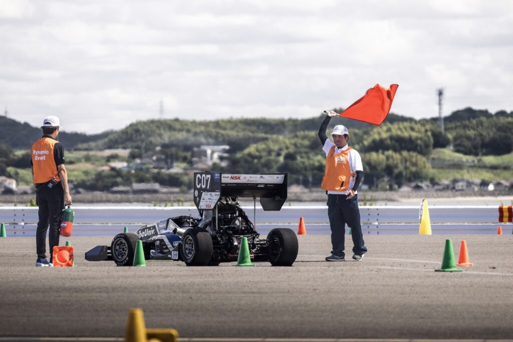 夕方に差し掛かろうかという空の下、多くの観客、チームに見られながら、その中でチームのみんながいるのに気づき、エンジンを吹かし、グリーンフラッグが振り上げられ、ホイールスピンさせてオートクロスの2周目がスタートしました。シケインまではかなり乗れていてこれはイケるっそう思ったスプーンでリヤがスライド、そのままスピンしました。それまで試走会では1度もスピンしたことがなかったので、何が起きたのかわかりませんでした。せめて来年のためにデータを残そうと残りコーナーを全力で攻めたものの走り終わってメンバーにドンマイと言われた時、あぁ終わったと、自分はやってしまったと理解しました。とにかくせめて最終日の枠であってくれと祈るだけで、それ以外に何も考えられませんでした。幸いバンカーで出したタイムのおかげで最終日の枠ではありましたが、オートクロスが終わった後は車両整備もせず隅っこのベンチで放心してました。あの時寄り添ってくれた黒澤くんありがとう。だいぶ気まずかったと思います。しばらくしょげてましたが、動的に出られないチームもあるんだと、その悔しさに比べたらと思い、なんとか戻ることができました。